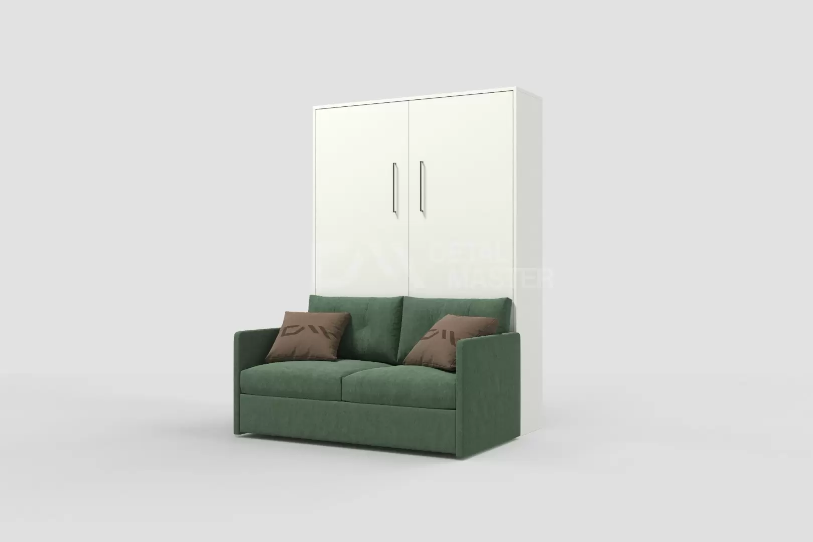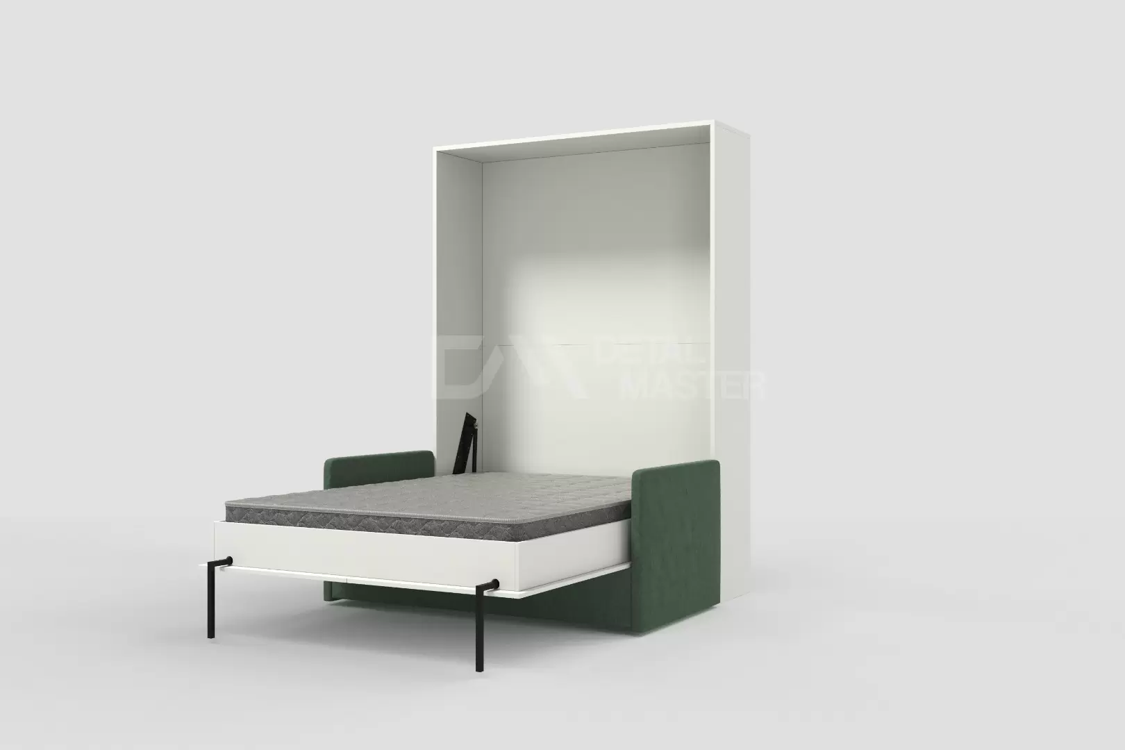 Шкаф-кровать "Simple Start Sofa" работает на механизме раскладывания собственной разработки "Start". Кровать раскладывается легким движением руки, превращаясь в полноценное спальное место. Просто потяните ее за ручки, расположенные на фасаде и выставите ножки-опоры.